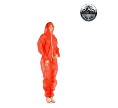 Produkt podlega Regulacji (EU) 2016/425, Regulacji REACH, materiał bezpieczny w kontakcie z pożywieniem EU 10/2011. Dostępne kolory kombinezonów czerwony. Szeroka gama rozmiarów: XXL(183x148cm), 3XL(188x154cm)