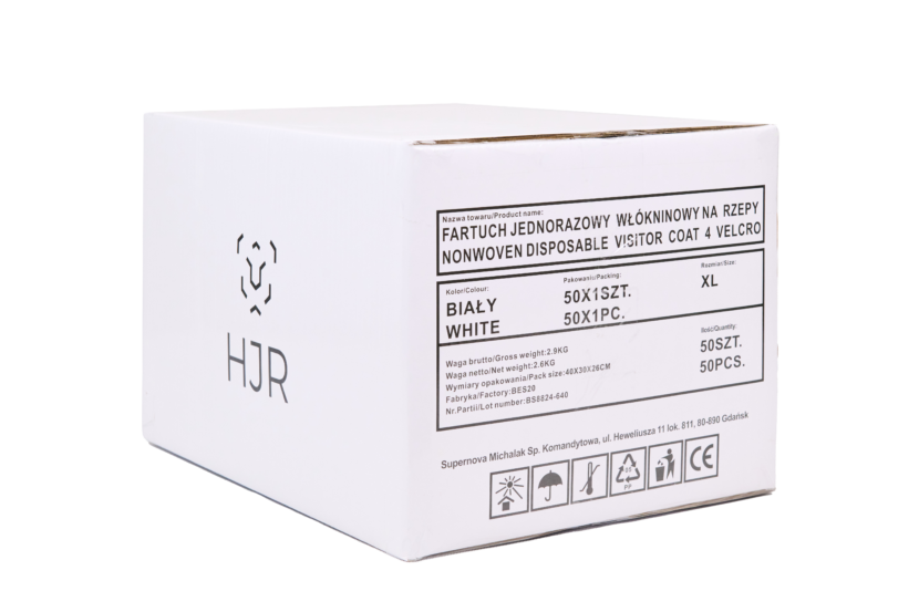 Czy fartuch włókninowy może być estetyczny i wygodny? Nasz produkt właśnie taki jest – na uwagę zasługuje ładny krój z kołnierzykiem, gumką w mankietach. Nie ma kieszeni. Dostępne rozmiary to XL/XXL(115x150cm), 3XL(120x160cm) i kolory – biały, niebieski oraz zielony. Wykonany z grubszego materiału, czyli włókniny (PP) 30g/m2.