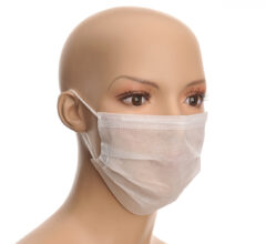 Jednorazowa maseczka jest wykonana z dwóch warstw włókniny polipropylenowej o gramaturze 25 g/m2. Ma dwa elastyczne paski, które pozwalają na łatwe dopasowanie produktu do twarzy. Przeznaczony do używania w branżach spożywczej, rolniczej i kosmetycznej.