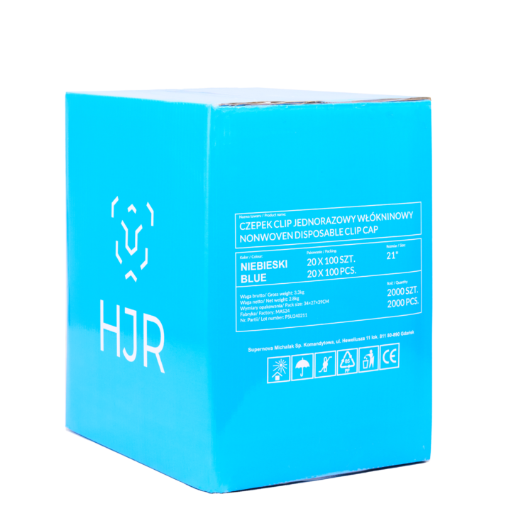 Czepek Clip podlega Regulacji (EU) 2016/425, Regulacji REACH, został wykonany z materiału bezpiecznego w kontakcie z pożywieniem EU 10/2011. Produkt dostępny w kolorze żółtym, czerwonym, zielonym, różowym, pomarańczowym, fioletowym, granatowym i czarnym. Rozmiar 21 cali (53cm +/- 1cm), łatwe dopasowanie do głowy, dzięki wszytej gumce.